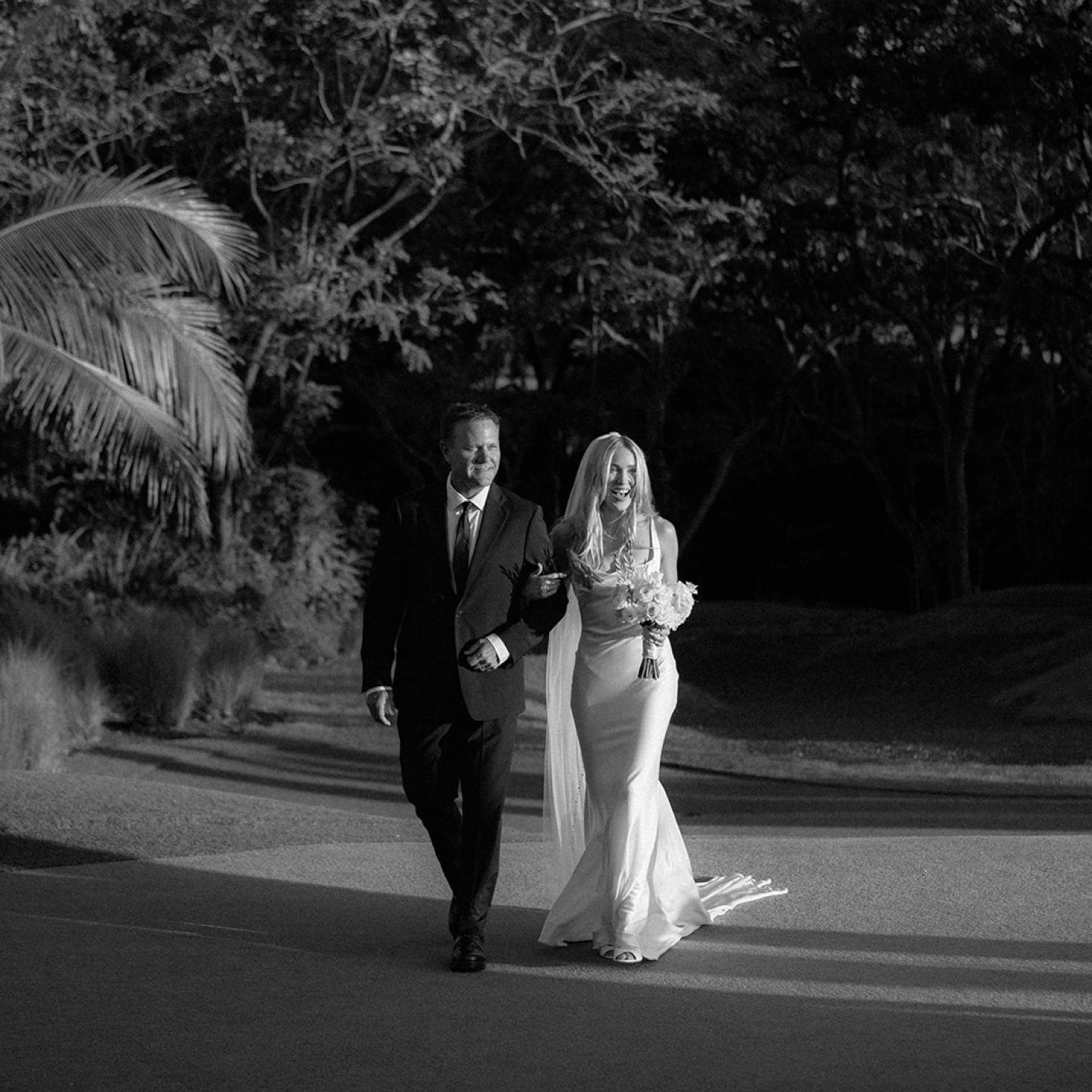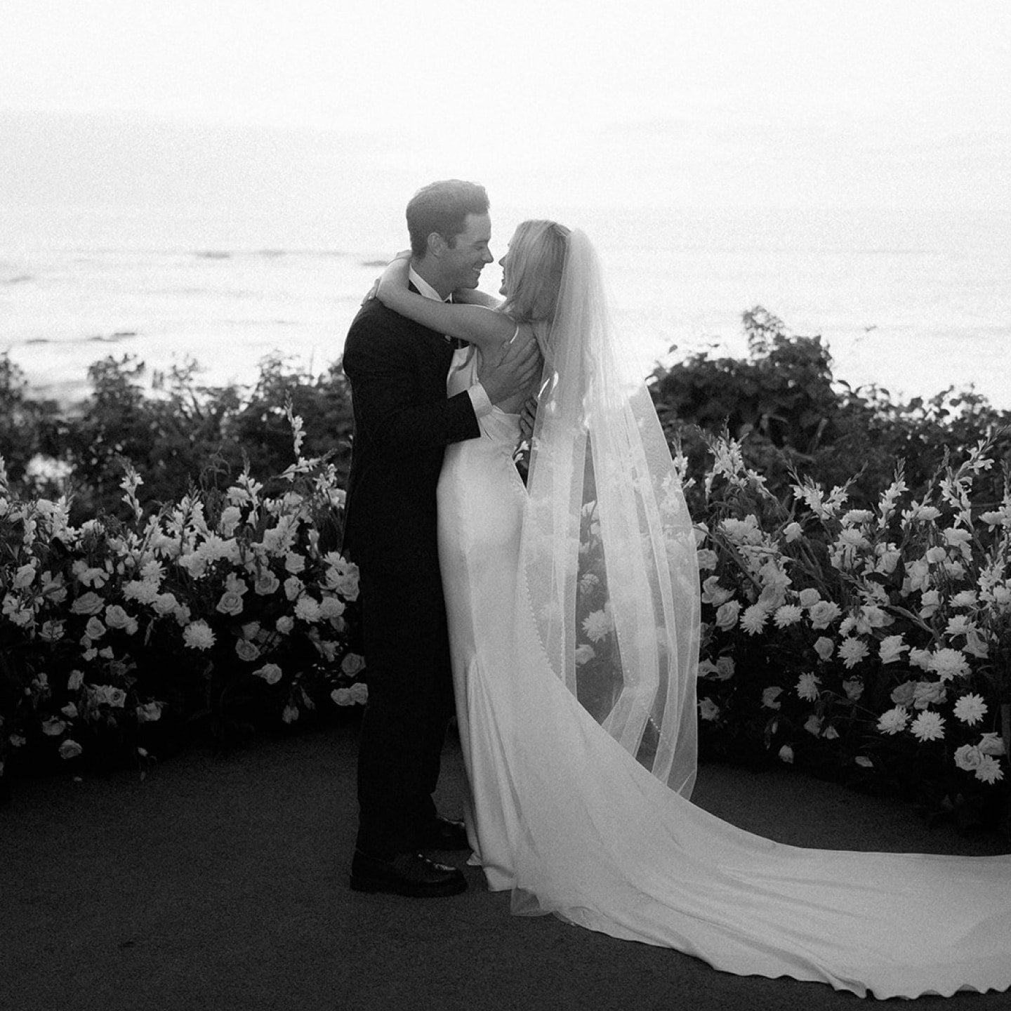 Flowing behind her, a nearly two-meter train offered unforgettable drama—timeless yet contemporary, understated yet undeniably striking. It was the perfect expression of Cassie’s quiet, confident elegance as she walked down the aisle.