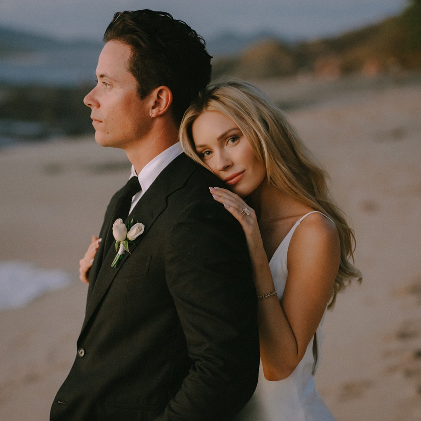 For the main event, Cassie embraced sleek sophistication in the Atelier Pronovias Ribelia gown—a true red-carpet-worthy masterpiece designed for a once-in-a-lifetime moment. The gown’s minimalist silk construction creates an effortlessly luxurious canvas, elevated by a spectacular draped neckline and delicate thin straps. But the magic continues in the back: a sculptural satin band forms an elegant, curved shape that draws the eye and enhances the gown’s modern, architectural beauty.